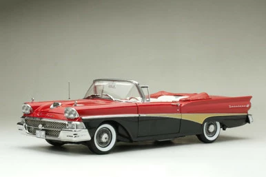 1958 Ford Fairlane 500 Open Convertible, Torch Red & Raven Black – Sun Star 5264 – 1/18 Diecast Car