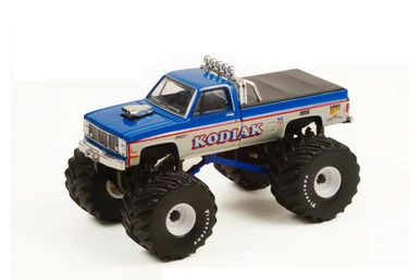 Get your hands on this legendary monster truck from Greenlight! This 1987 GMC Sierra Classic Monster Truck with Bed Cover is a 1/64 scale model replica. It comes in blue and features real rubbert tires, detailed exterior, metal body and chassis, comes in a blister pack. It’s a fantastic addition for any monster truck collection, and wonderful for die-hard Kodiak buffs!