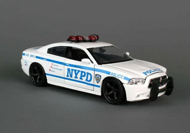- This NYPD Dodge Charger police car is made with die cast metal and has opening doors.
